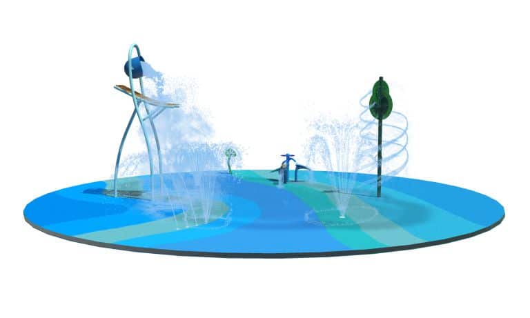 Cast-in-place was added to the concrete slab to emphasize the customer's desired theme and make the water play area more playful.