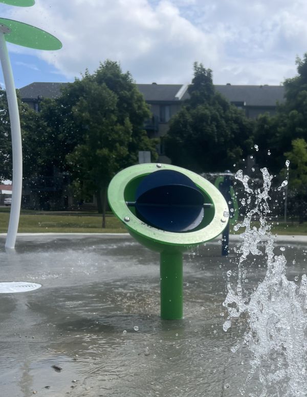 The Bola structure is fitted with a nozzle at the bottom of its half-sphere, enriching the play experience for Aquajeunes. They'll enjoy spinning the wheel, creating a cause-and-effect effect with the accumulated water.